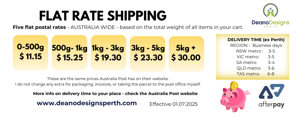 FLAT RATE SHIPPING APPLIES ONLY TO AUSTRALIA – For overseas orders, please contact us for postal pricing.