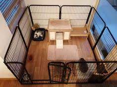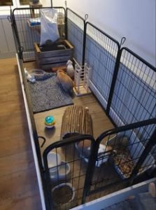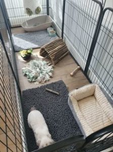 An absorbent and soft fleece cage liner across a section of the pen will give your pets a soft and cushioned space.
